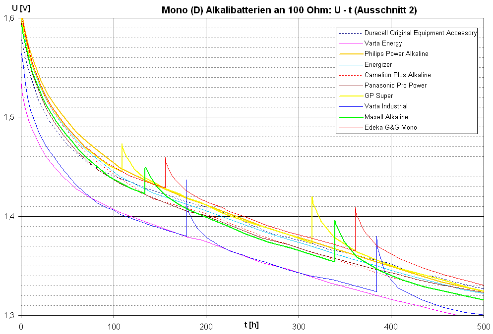verschiedene Batterien verglichen. Das 2. und 3. Bild zeigen