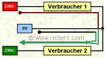 230V Leiter kommende und durch den Verbraucher_1 fliessende Strom durch