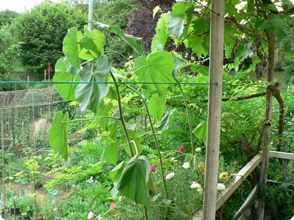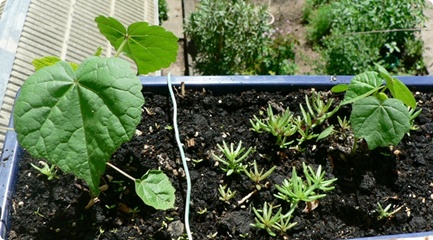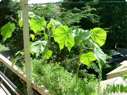 am 15. Juni die 3 inzwischen 35 cm hohen Pflanzen im Baklkonkasten (2)