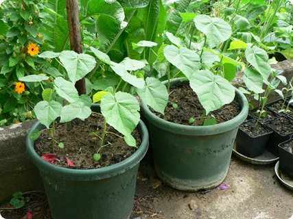 Abutilon Indicum sind inzwischen 70 cm hoch und blühen. Eine Blüte