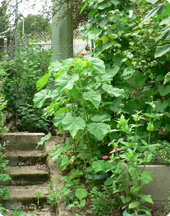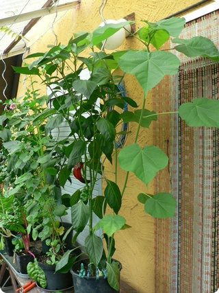 das aus dem Paprikatopf herauswachsende Abutilon Indicum (3) am
