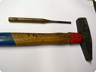 Die Kraft des Schraubstocks würde locker ausreichen, aber der Durchschläger ist das Problem: Er biegt sich im dünnen Bereich.
