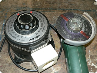 Winkelschleifer ist mittels eines Stelltrafos gedrosselt. Das ist sehr