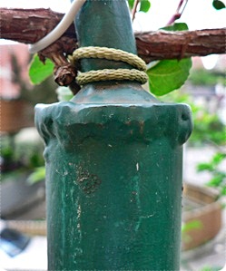 Der Lampenbogen muss nun an den wesentlich dickeren Zaunpfosten angeschweisst werden.