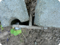 Bei zähem Boden sollte man nicht direkt auf die Aluminiumprofile einhämmern, da man ihnen sonst das Hämmern ansehen wird. Stattdessen sollte ab einer gewissen Einschlagtiefe ein Stück Holz obenauf gelegt werden, das die Energie der Hammerschläge gleichmässig auf das T-Profil verteilt.
