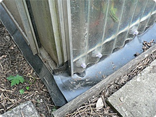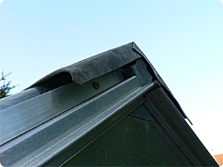 Man erkennt gut, wie die Wellbahnen unter das Blech ragen und auf den