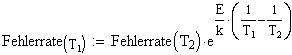 Hier bedeuten: E: Aktivierungsenergie in eV, k: Boltzmannkonstante (=8.62E-5 eV/K) T1, T2: Temperaturen |