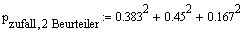 Die Wahrscheinlichkeit, dass ZWEI Beurteiler die selbe Kategorie wählen, erhält man durch quadrieren und anschliessendes Addieren der zuvor berechneten erwarteten Wahrscheinlichkeiten.