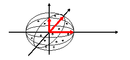 Nun wird bei festgehaltener erster Achse das aus den restlichen Achsen bestehende System derart gedreht, dass wieder eine Achse in diejenige Richtung zeigt, in der die Datenpunkte in dem nun verbleibenden Datenraum die grösste Varianz besitzen, usw.