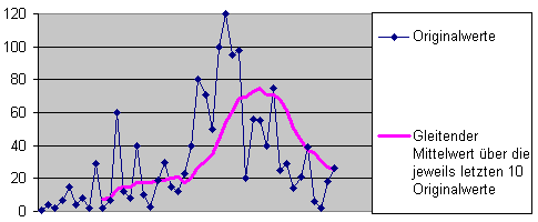 Die bekannteste Glättungsmethode ist der gleitende Mittelwert.
