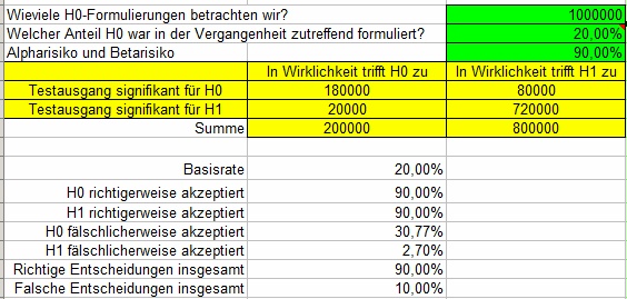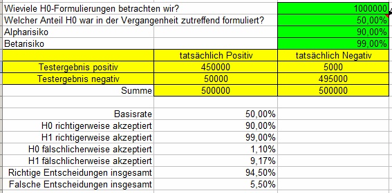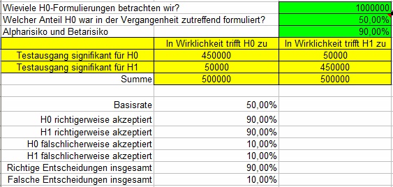 Konsequenz ergibt sich, wenn man den Anteil richtiger H0 der