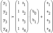In diesem Beispiel ist j=2 (2 Parameter, b0 und b1) und n=4 (4 Messwerte). Für die weiteren Schritte lassen wir jedoch n allgemein.