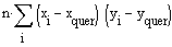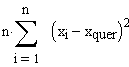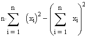 Man mache sich klar, dass der Nenner des Vorfaktors (ohne das äussere Quadrat) und die erste Klammer im Zähler gleich sind. Es ist nämlich n*S(xi2) = n*n*(x2)quer und [S(xi)]2 = n*n *(xquer)2 Ferner ist |