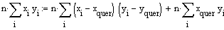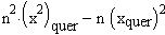 Man mache sich klar, dass die beiden vorkommenden Doppelsummen, also der erste Term nach der ersten öffnenden Klammer und der letzte Term vor den beiden schliessenden Klammern, gleich sind (und sich somit wegheben). n*xquer ist nämlich dasselbe wie S(xi), da der Index i von 1 bis n läuft.