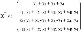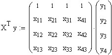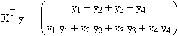 Danach wird XT mit dem Vektor y multipliziert (jede Zeile der Matrix wird mit der Spalte des Vektors y multipliziert. Es resultiert ein Vektor)