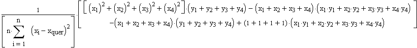 Im vierdimensionalen Fall (3 unabhängige Variablen -> 4 Parameter b0,b1,b2,b3) also b02, b0b1, b0b2, b0b3, b12, b1b2, b1b3, b22, b2b3 und b32.