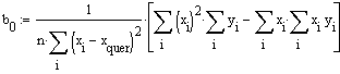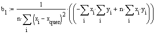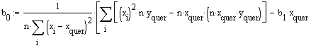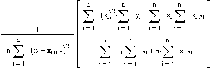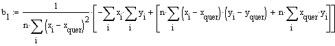 Der Vorfaktor-Term (ganz links) und der Term nach der 2. öffnenden Klammer ergeben genau b1. Ferner ist S(xi) = n*xquer und S(yi) = n*yquer Letztgenanntes betrifft alle verbleibenden Terme. |
