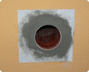 Haftputzgips. Das Rohr befindet sich - abgesehen von einem kleinen