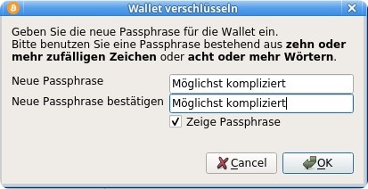Erstellen: Die Passphrase oder das Passwort ist der Key für die Wallet. Wenn diese Wallet primär als Wertspeicher, und daher seltener verwendet werden soll, dann ist es empfehlenswert, ein
