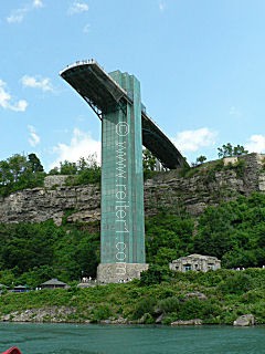 Der Niagara Falls Observation Tower, von der Maid of the Mist aus gesehen. |