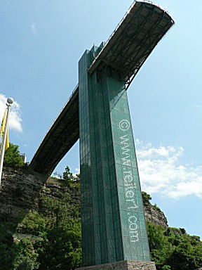 Im Niagara Falls Observation Tower kann man mit dem Aufzug hinunterfahren ans rechte Ufer des Niagara Rivers zur Anlegestelle der Maid of the Mist.
