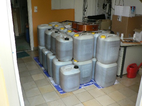durch Hagel zerstört wurde. Inzwischen wird direkt in 20L oder 30L Kanister abgefüllt. Von diesen Kanistern wird das Fahrzeug direkt über den